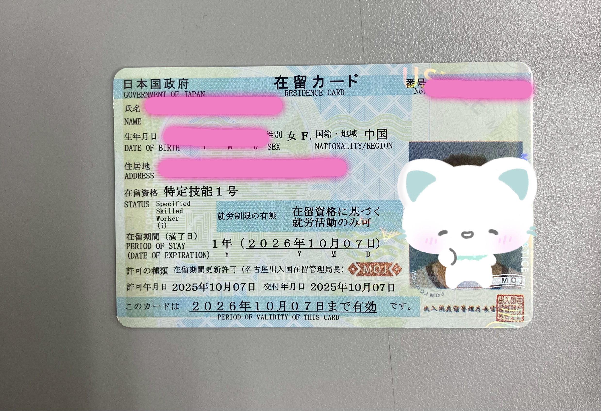 2025.10.14 お知らせ 特定技能1号ビザ取得報告! 我拿到了签证 TOKUTEI GINO Có được Memperoleh Visa 2025.10.7 中国人女性 特定技能1号ビザ(外食業)更新しました。