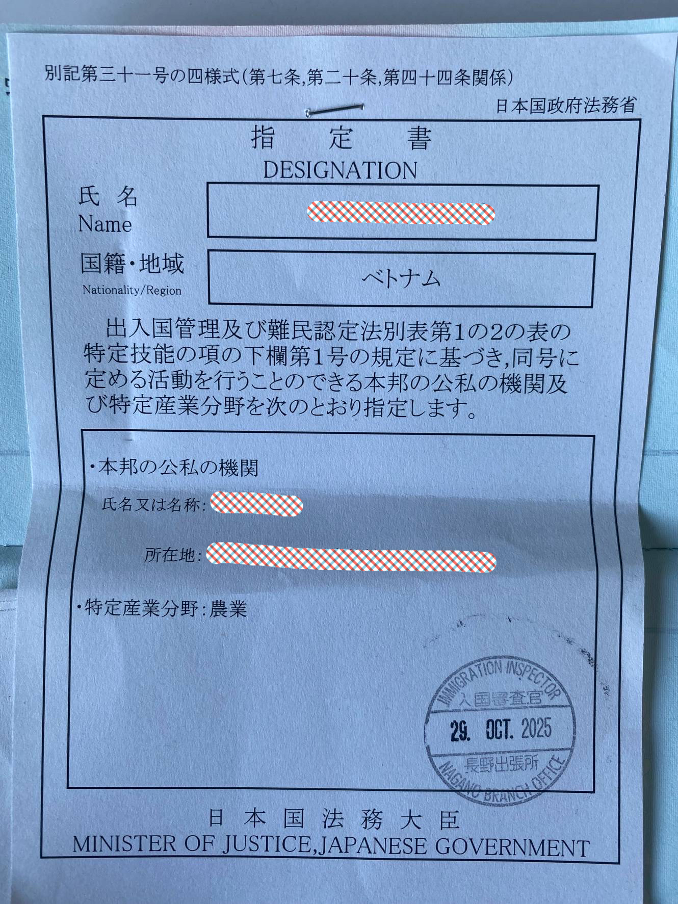 2025.11.05 お知らせ 特定技能1号ビザ取得報告! 我拿到了签证 TOKUTEI GINO Có được Memperoleh Visa 2025.10.29 ベトナム人男性 特定技能1号ビザ(農業)取得しました。
