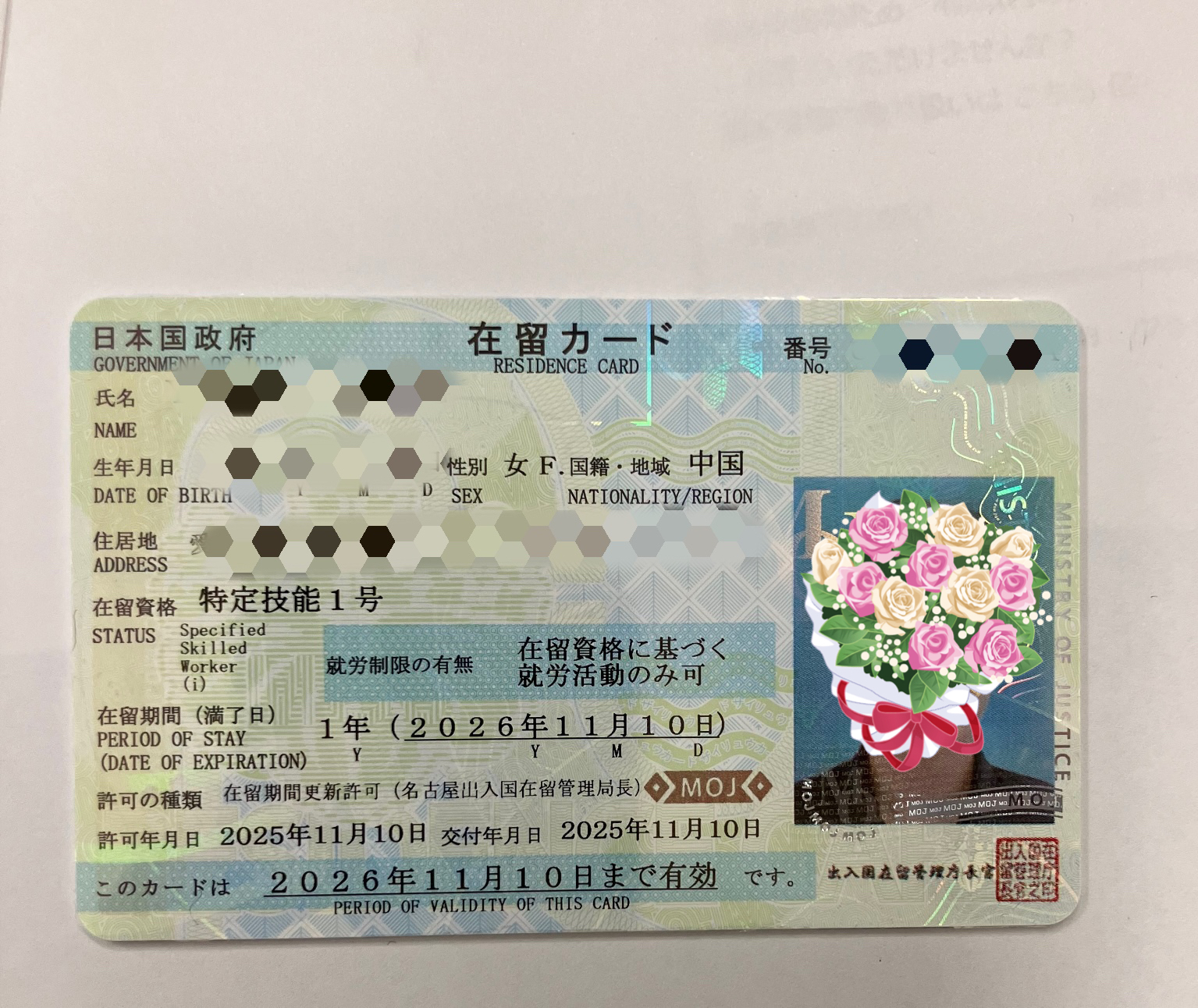 2025.11.12 お知らせ 特定技能1号ビザ取得報告! 我拿到了签证 TOKUTEI GINO Có được Memperoleh Visa 2025.11.10 中国人女性 特定技能1号ビザ(外食業)更新しました。