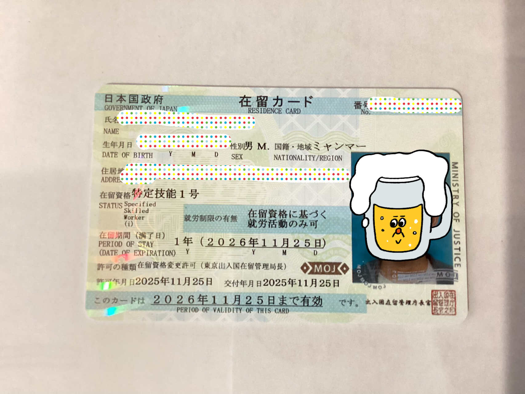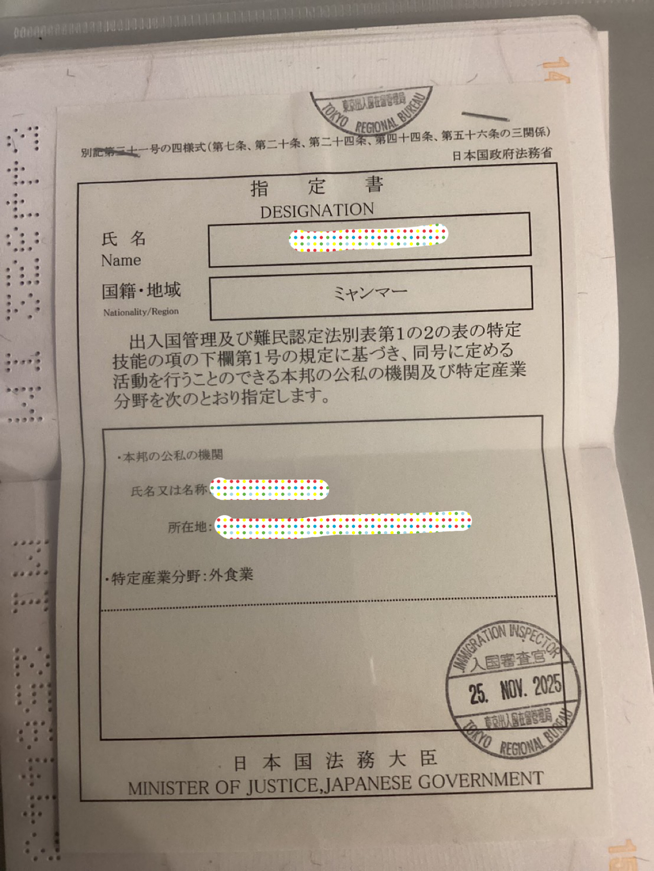2025.12.10 お知らせ 特定技能1号ビザ取得報告! 我拿到了签证 TOKUTEI GINO Có được Memperoleh Visa 2025.11.25 ミャンマー人男性 特定技能1号ビザ(外食業)取得しました。