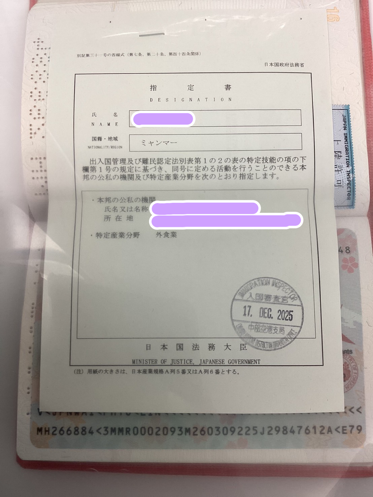 2026.01.07 お知らせ 特定技能1号ビザ取得報告! 我拿到了签证 TOKUTEI GINO Có được Memperoleh Visa 2025.12.17 ミャンマー人男性 特定技能1号ビザ(外食業)取得しました。