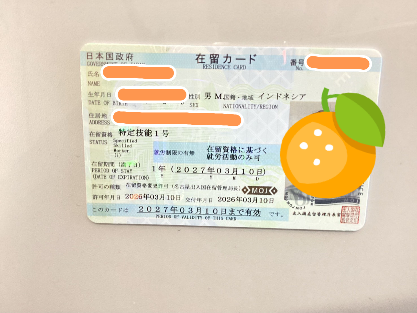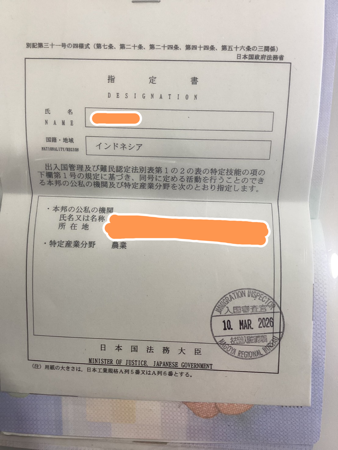 2026.03.13 お知らせ 特定技能1号ビザ取得報告! 我拿到了签证 TOKUTEI GINO Có được Memperoleh Visa 2026.3.10 インドネシア人男性 特定技能1号ビザ(農業)取得しました。