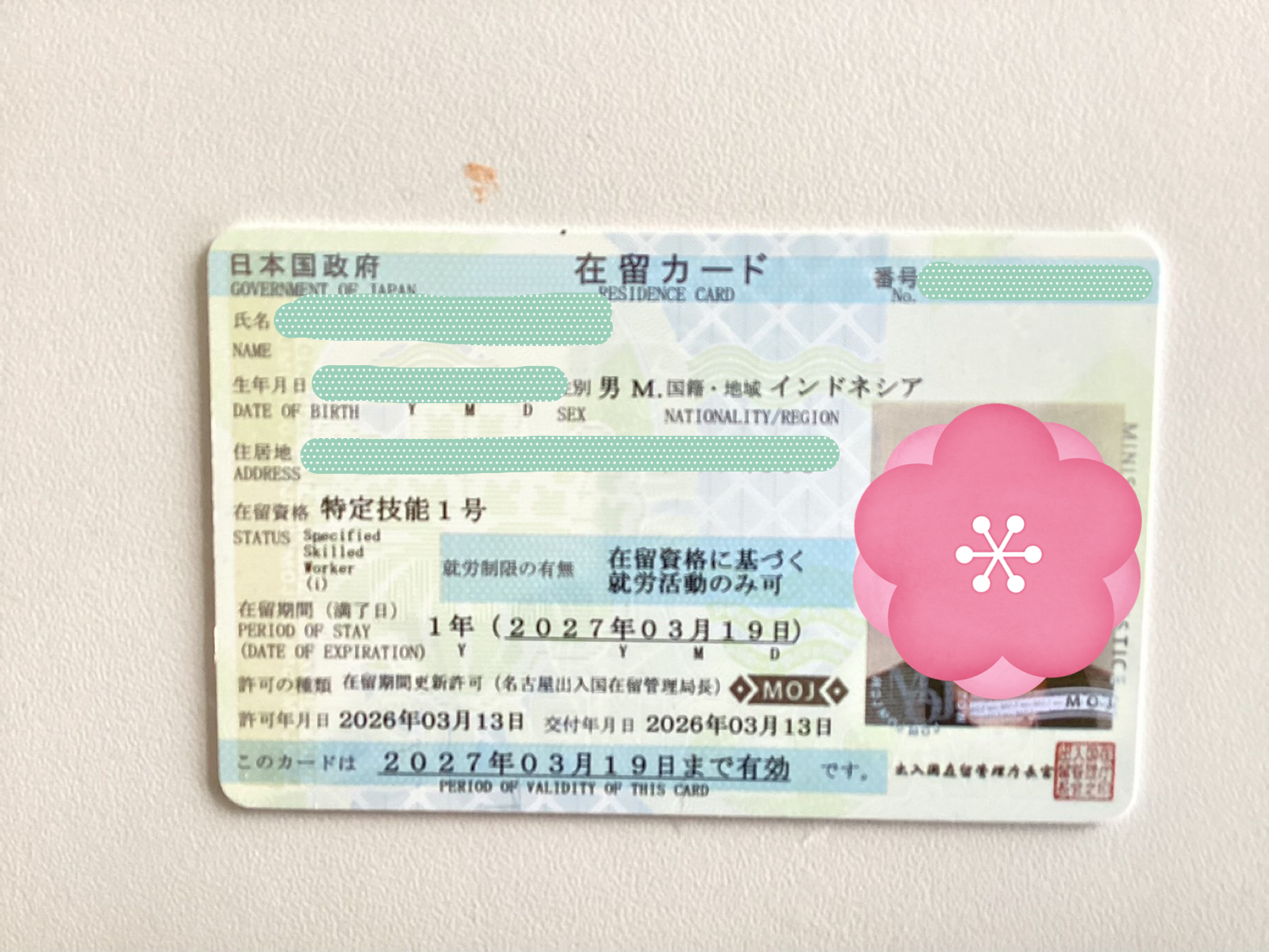 2026.03.17 お知らせ 特定技能1号ビザ更新報告! 我拿到了签证 TOKUTEI GINO Có được Memperoleh Visa 2026.3.13 インドネシア人男性 特定技能1号ビザ(農業)更新しました。