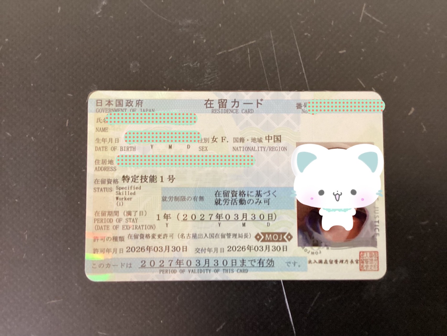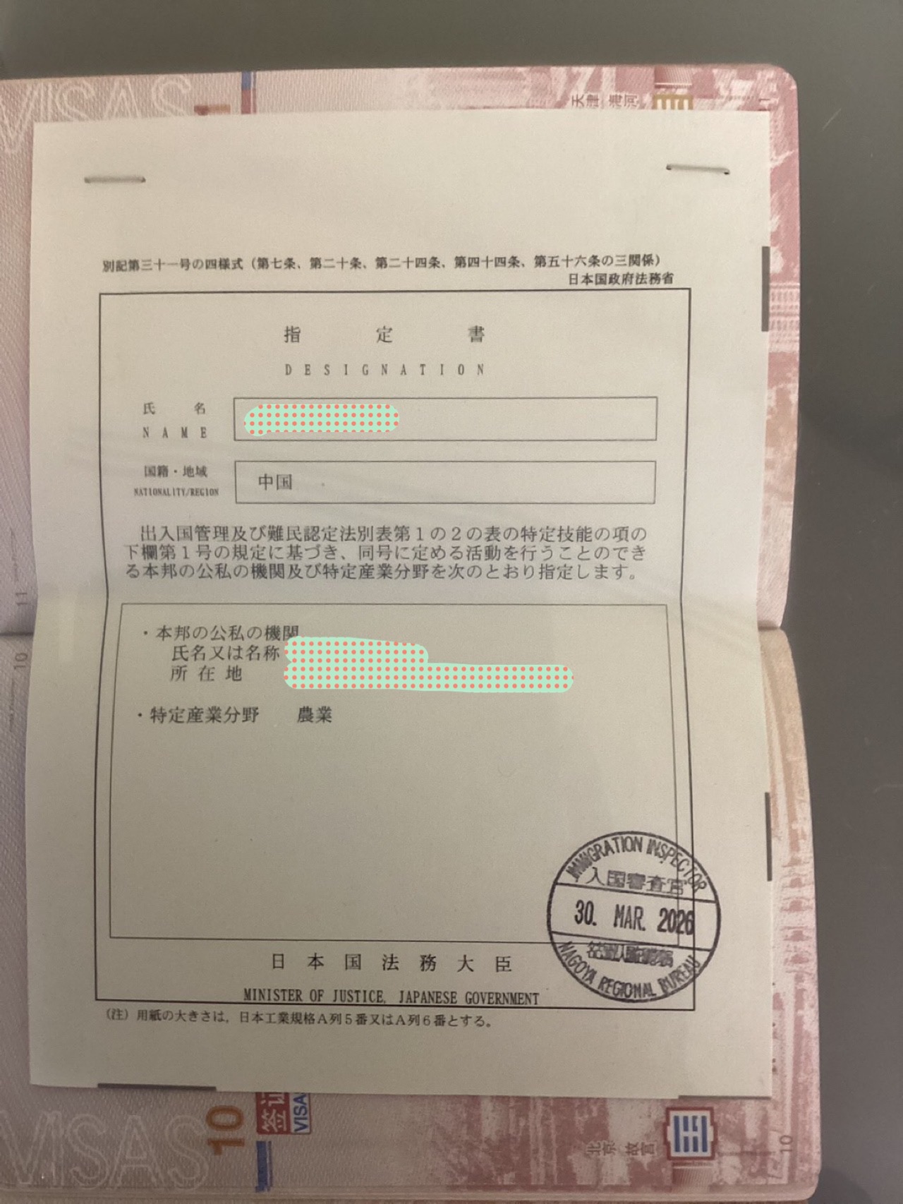 2026.04.06 お知らせ 特定技能1号ビザ取得報告! 我拿到了签证 TOKUTEI GINO Có được Memperoleh Visa 2026.3.30 中国人女性 特定技能1号ビザ(農業)取得しました。